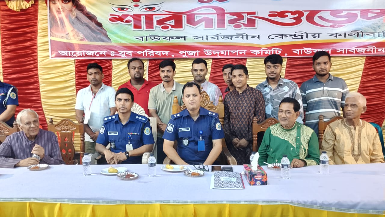 পুজা উদযাপন কমিটির সভাপতি সনজিৎ সাহার সভাপতিত্বে আয়োজিত অনুষ্ঠানে বক্তব্য রাখেন,, সহকারী পুলিশ সুপার আরিফ মোহাম্মদ সাকুর, ওসি মো; আকতারুজ্জামান সরকার ও বীর মুক্তিযোদ্ধা অধীর রঞ্জন দাস।