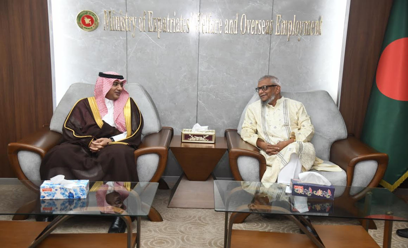 প্রবাসী কল্যাণ ও বৈদেশিক কর্মসংস্থান মন্ত্রী আরিফুল হক চৌধুরীর সাথে সৌদি রাষ্ট্রদূতের সৌজন্য সাক্ষাৎ