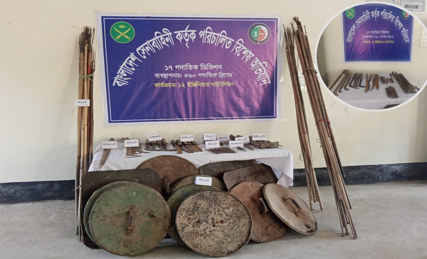 মধ্যনগরে সেনাবাহিনীর বিশেষ অভিযানে বিপুল পরিমানে দেশীয় অস্ত্র উদ্ধার।