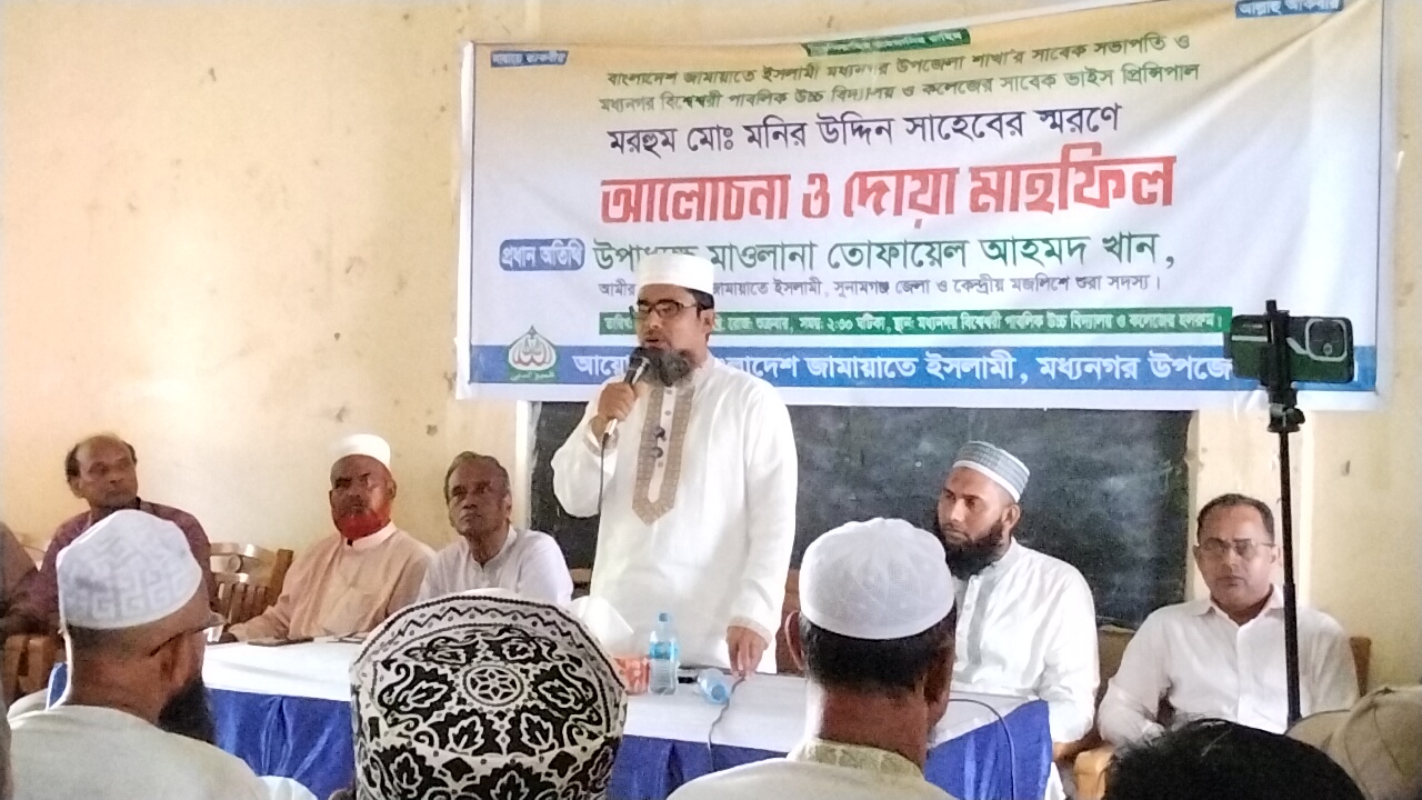 কাইয়ুম বাদশাহ, মধ্যনগর (সুনামগঞ্জ) সুনামগঞ্জের মধ্যনগর উপজেলা জামায়াতের সাবেক সভাপতি ও শিক্ষাবিদ মরহুম মনির উদ্দিন স্যারের স্মরণে আলোচনা সভা ও