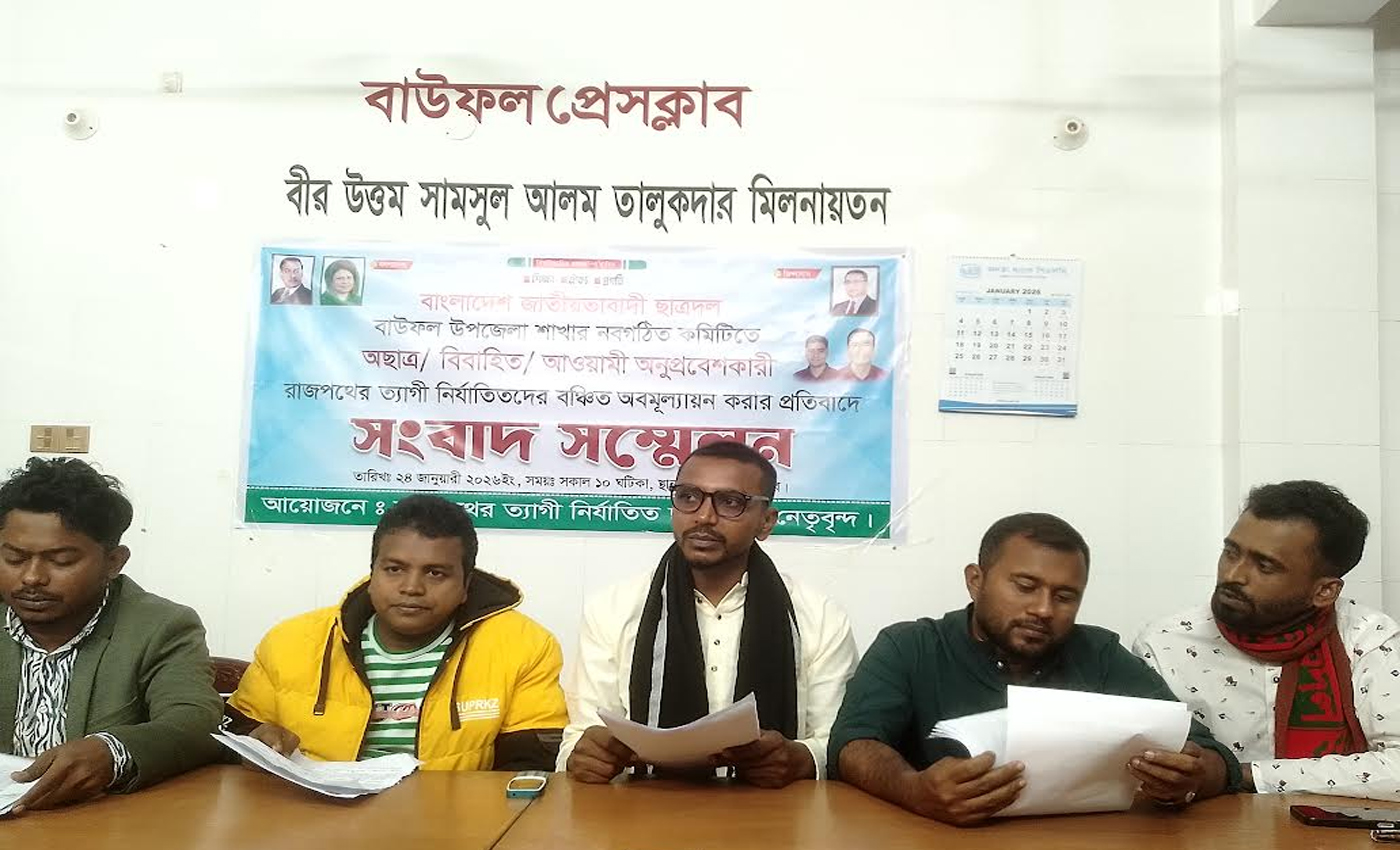 বাউফলে ছাত্রদলের নতুন কমিটিকে প্রত্যাখান করে সংবাদ সম্মেলন করেছে রাজপথে নির্যাতিত পদবঞ্চিতরা