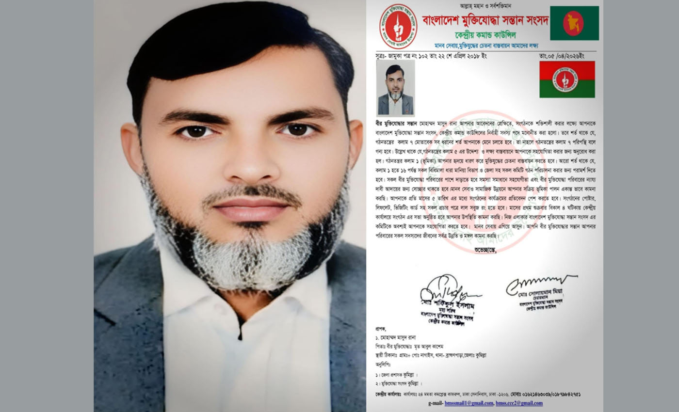 Logo মুক্তিযোদ্ধা সন্তান সংসদের কেন্দ্রীয় কমান্ড কাউন্সিলের নির্বাহী সদস্য নির্বাচিত হলেন ব্রাহ্মণপাড়ার মাসুদ রানা। Logo Operation Clean Homes, Healthy Lives” উদ্বোধন: ডেংগু প্রতিরোধে নগরবাসীকে সম্পৃক্ত করে কাজ করার প্রত্যয় ডিএনসিসি প্রশাসকের Logo জিয়া সরণি খাল পুনরুদ্ধার ও আধুনিকায়নে ডিএসসিসি’র ব্যাপক উদ্যোগ: দ্রুত বাস্তবায়িত হচ্ছে ৩০০ কোটি টাকার প্রকল্প Logo রাণীশংকৈলে পিআইও’র বিরুদ্ধে দুর্নীতির অভিযোগে সংবাদ সম্মেলন, মামলা প্রত্যাহারের দাবি Logo মাদক নির্মূলে সমাজের সকলকে এক যোগে কাজ করতে হবে- ড. মাসুদ এমপি Logo হায়দার আলী স্কুল অ্যান্ড কলেজে বার্ষিক ক্রীড়া প্রতিযোগিতার পুরস্কার বিতরণ অনুষ্ঠান ও নতুন ভবনের উদ্বোধন Logo আইসিএবি’র ২২তম সমাবর্তনে হিসাববিজ্ঞানীদের কৌশলগত উপদেষ্টা হিসেবে গড়ে ওঠার আহ্বান জানিয়েছেন তথ্য ও সম্প্রচার মন্ত্রী Logo সুনামগঞ্জে ডিবি পুলিশের বিশেষ অভিযানে বিপুল পরিমাণে চোরাচালান পণ্য জব্দ, আটক ২ জন Logo ক্ষমতার স্বাদ পেয়ে বিএনপি জনগণের কথা ভুলে গেছে: নাহিদ ইসলাম Logo খাগড়াছড়ির পানছড়িতে বিজিবির বিশেষ অভিযানে ১,৪০০ রাউন্ড গোলাবারুদ জব্দ